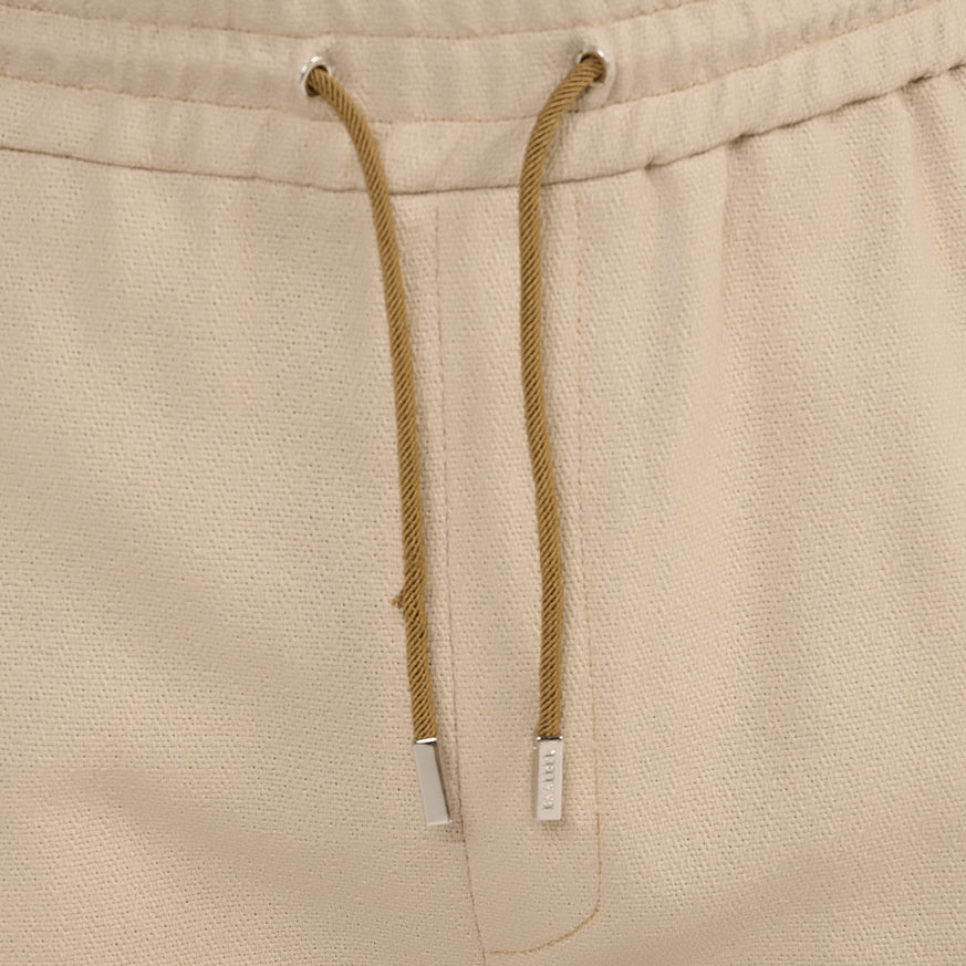 Discover our Sanaray shorts in beige textured cotton. Its relaxed, loose fit ensures optimal comfort, while it features an elasticated waistband, slant pockets and welt pockets at the back. Perfect for your sunny day outfits, these shorts have an elegant and relaxed silhouette.